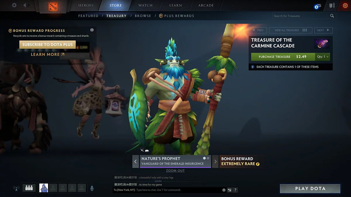Кроме того, все подписчики Dota Plus отныне могут менять ненужные предметы на специальные части новой сокровищницы. Чтобы получить сокровищницу, нужно собрать шесть таких деталей. В подарок игрок также получит 2 000 осколков.