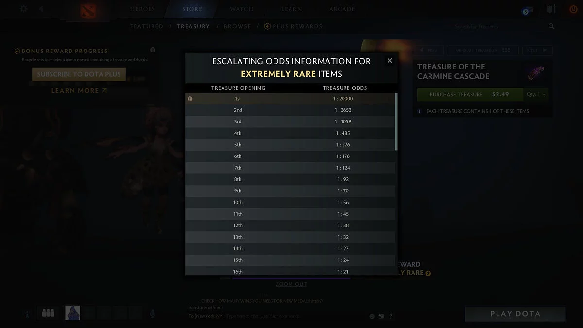 Valve выпустила новый патч для DOTA 2, который позволяет геймерам узнать шанс выпадения предметов в сокровищнице. Стоит заметить, что изначально эта система была доступна только в Нидерландах и Бельгии.