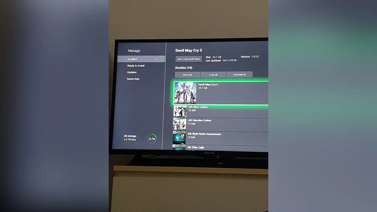 Изначально об этом рассказали на Reddit. Пользователь с ником Chef-Eligma опубликовал фотографию с интерфейсом консоли от Microsoft. Судя по изображению, Devil May Cry 5 весит 29,66 ГБ, а возможность загрузки появилась у тех, кто оформил предзаказ.