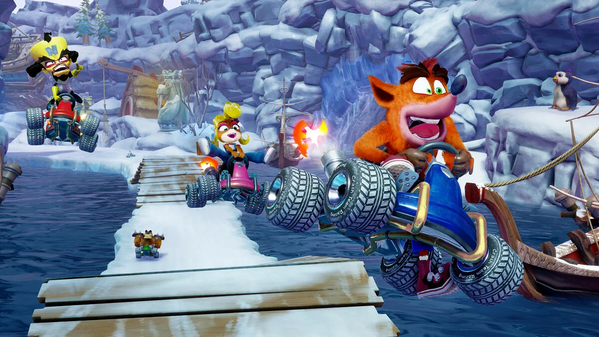 В Crash Team Racing Nitro-Fueled представлены все известные персонажи из серии платформеров про лиса Крэша, включая его сестру Коко и злодея доктора Нео Кортекса.