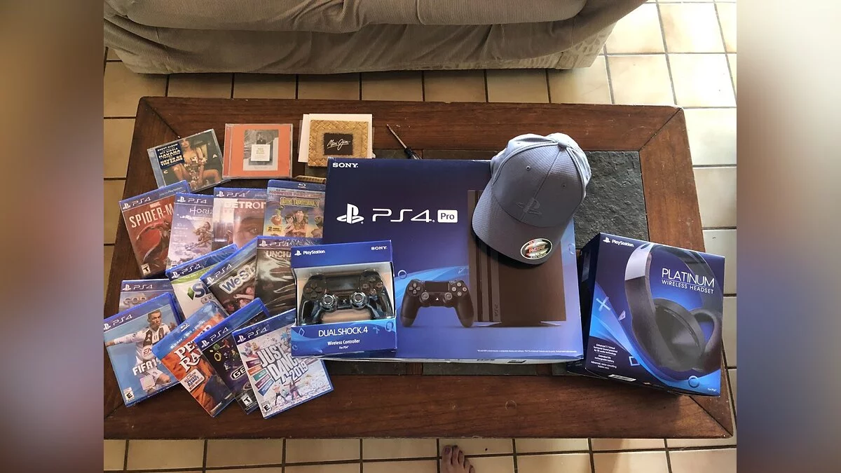 Он выслал ей крутой подарок — PS4 Pro, геймпад DualShock 4, беспроводную гарнитуру PlayStation Platinum, 10 дисков с играми, гифт-карту на приобретение солнцезащитных очков Maui Jim, а также такую же точно кепку, которая была надета на Тарин в момент удара. Стоит заметить, что первая кепка девушки вся была испачкана кровью.