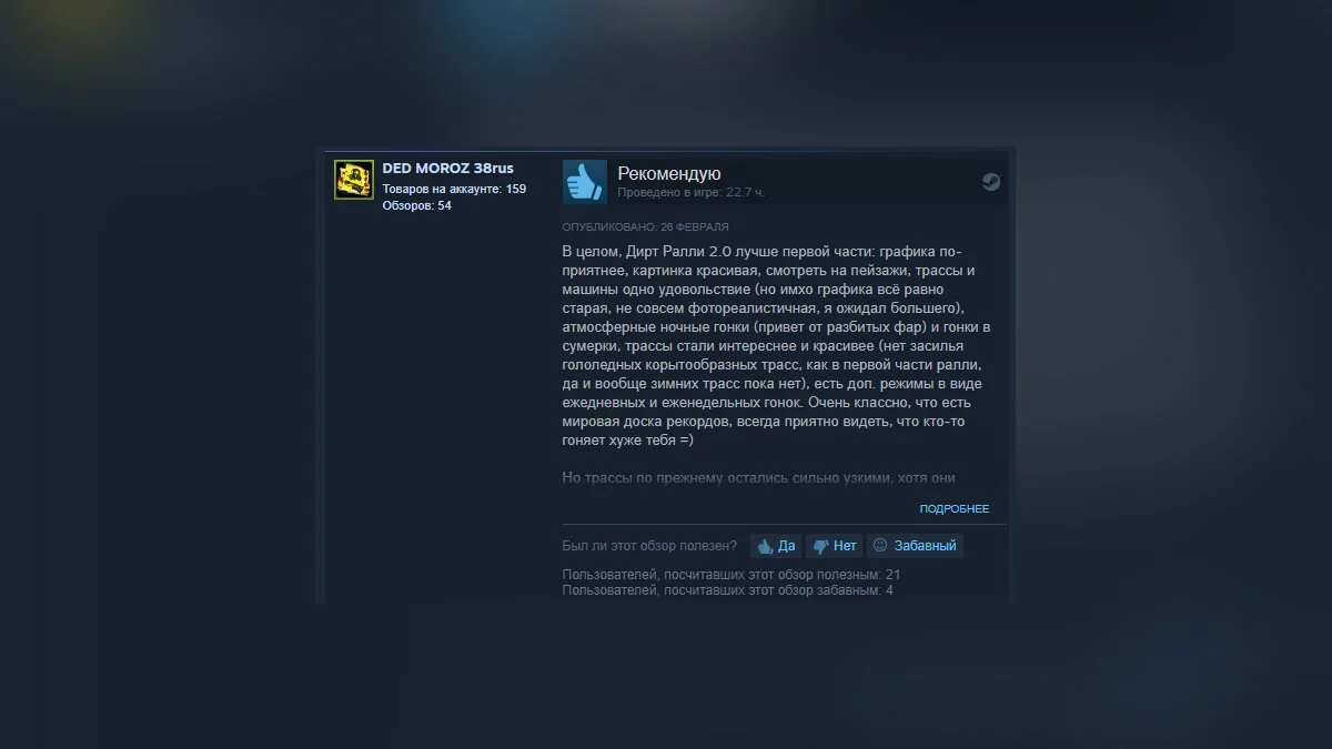Сегодня на PC, PlayStation 4 и Xbox One вышел раллийный симулятор DiRT Rally 2.0, который на прошлой неделе получил высокие оценки от прессы. Теперь же очередь дошла до геймеров, рассказавших о своих впечатлениях в Steam.