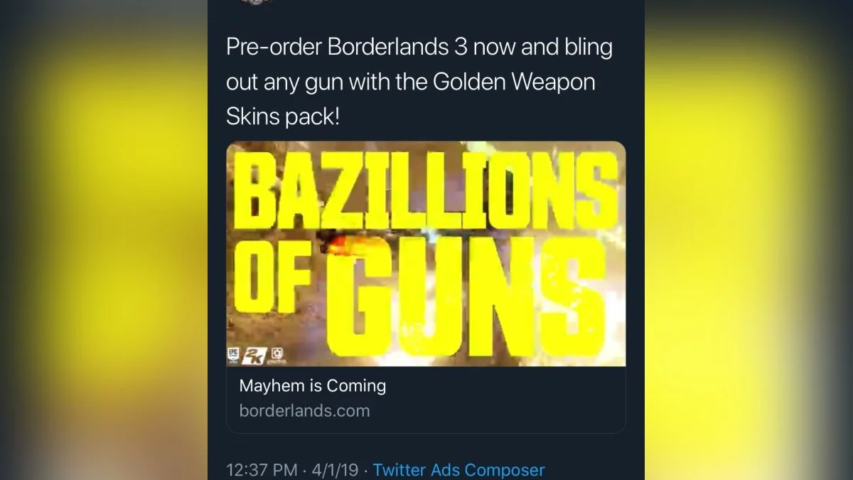 Borderlands 3 releasing on Epic Games Store (from a Twitter ad video that is now deleted) pic.twitter.com/d4v17GapWZ