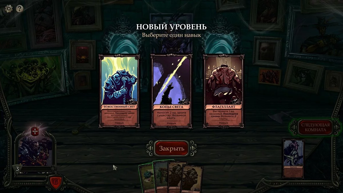 Собрать колоду не так просто: предметы, сокровища, оружие и навыки содержатся в одной колоде — вам придется соблюдать баланс карт и быть готовым ко всему! Вдобавок в вашей колоде навсегда остаются карты ранений, яда и проклятий, придется от них избавляться.