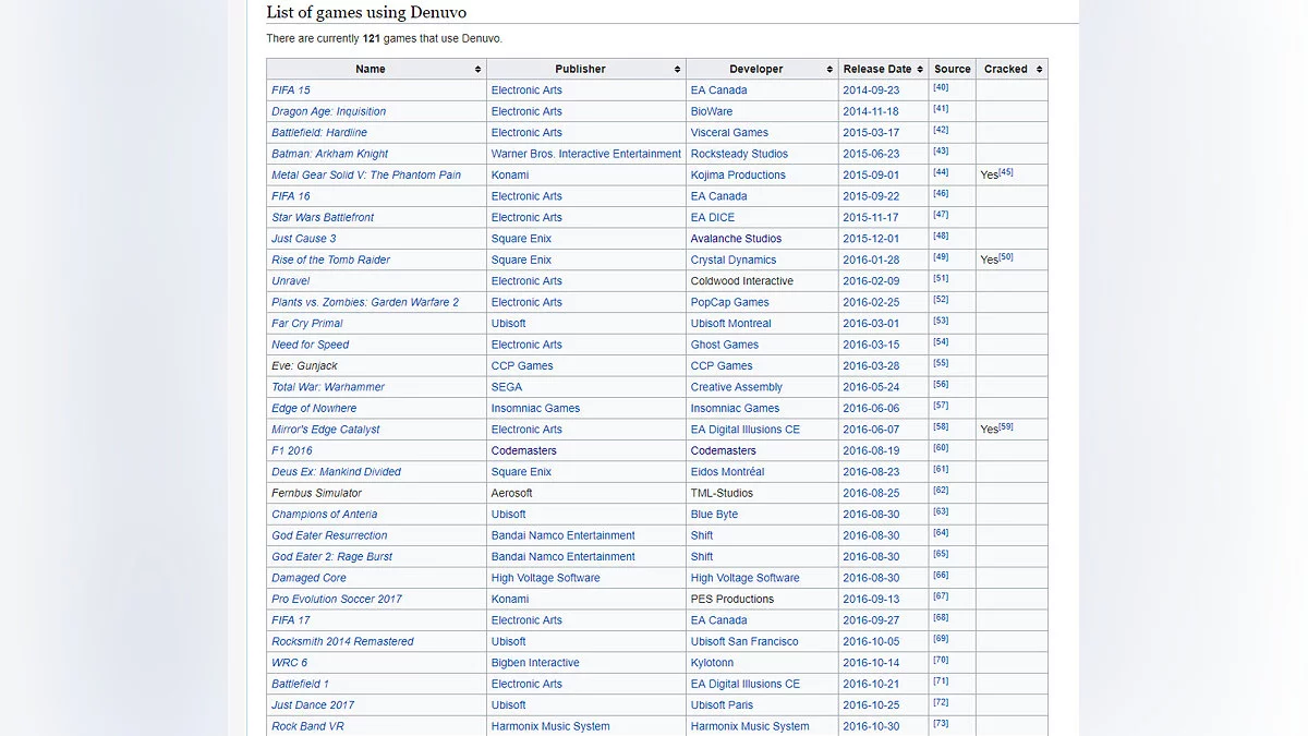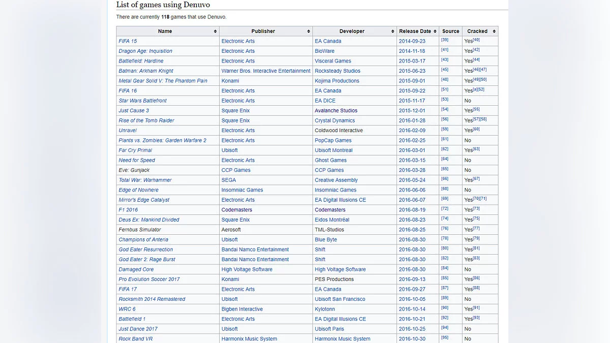 Зачем этот кто-то убрал информацию о кряках к играми, которые не смогла защитить Denuvo, пока не известно.