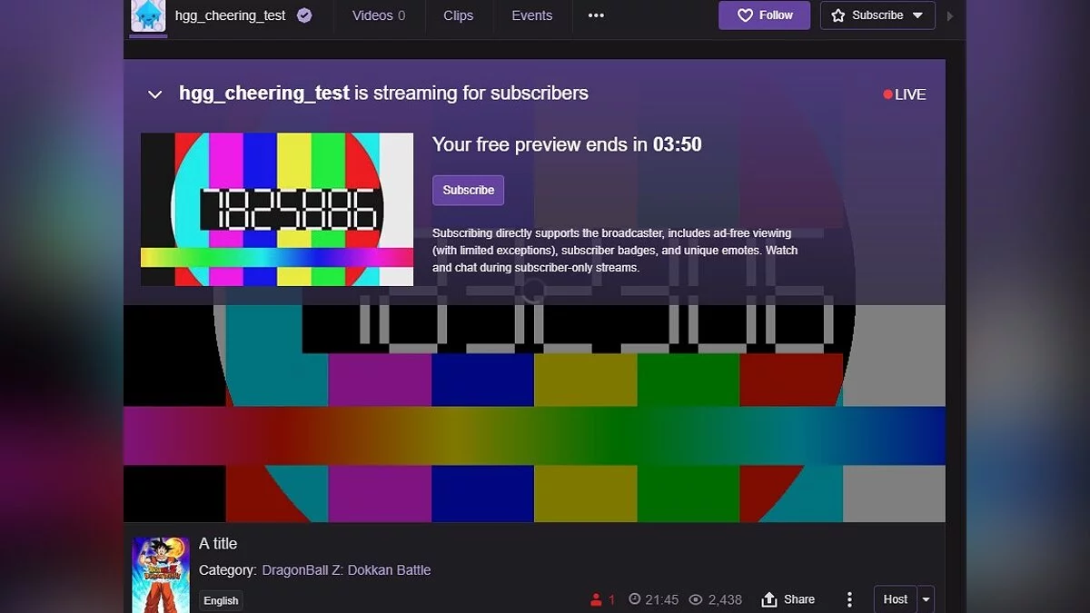 Стример с ником LBr Gaming заметил, что Twitch тестирует функцию трансляций только для подписчиков на аккаунте hgg_cheering_test, который является официальной учётной записью. На скриншоте видно, что запущенный стрим на канале доступен только подписчикам, а у обычного пользователя есть небольшое количество секунд для бесплатного ознакомления.