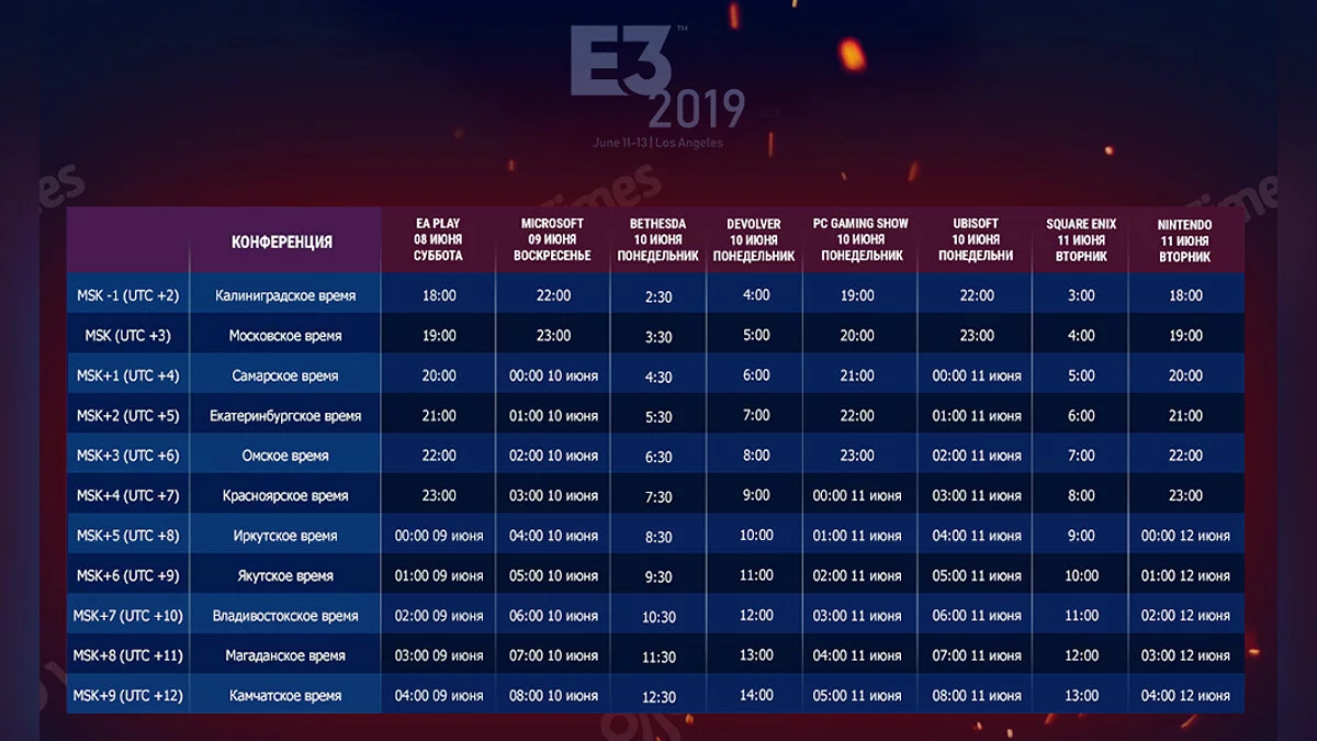 Во сколько начинается Е3 2019 — расписание конференций в одной картинке