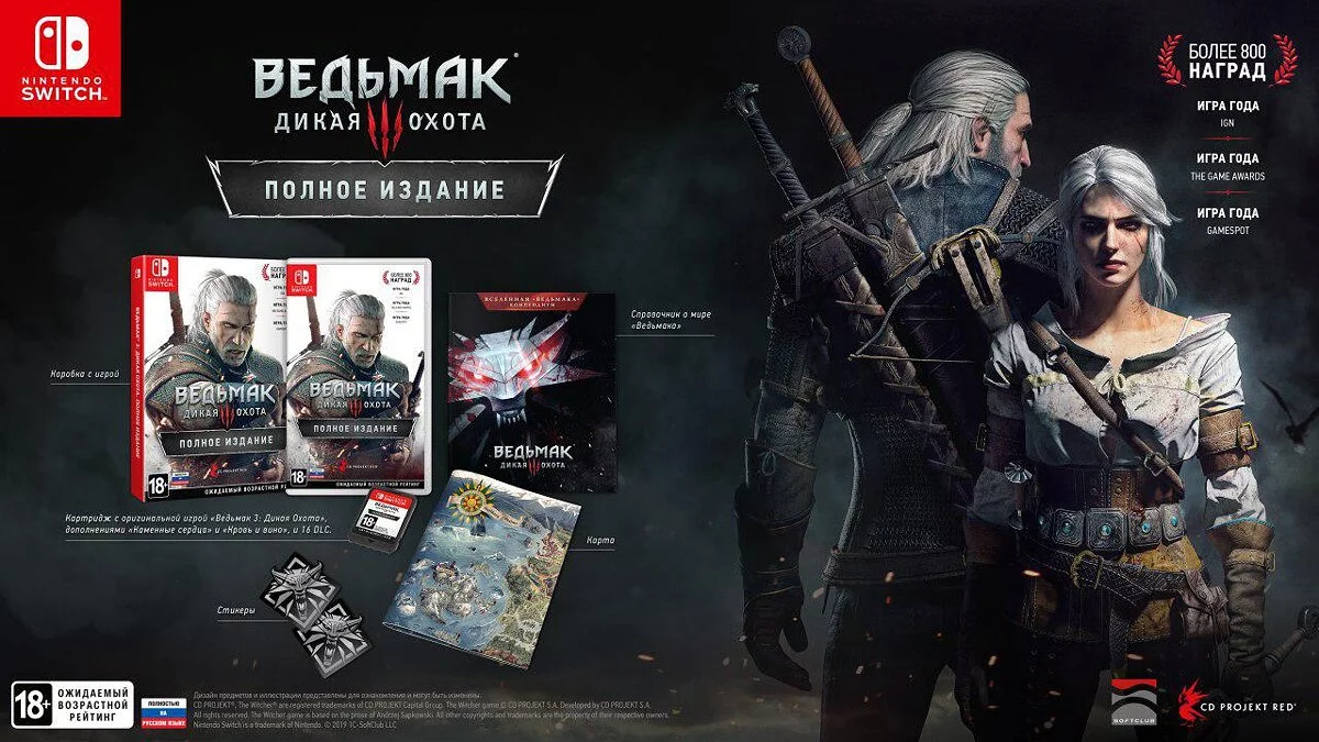 Полное издание The Witcher 3: Wild Hunt выйдет в этом году в цифровой и розничной версии. Туда войдут оригинальная игра и сюжетные дополнения «Каменные сердца» и «Кровь и вино» вместе с 16 бесплатными DLC. Кроме того, обладает физическое издание также включает компендиум по вселенной «Ведьмака», стикеры и карту игрового мира.