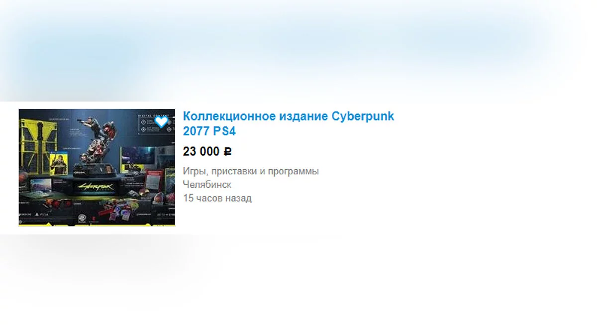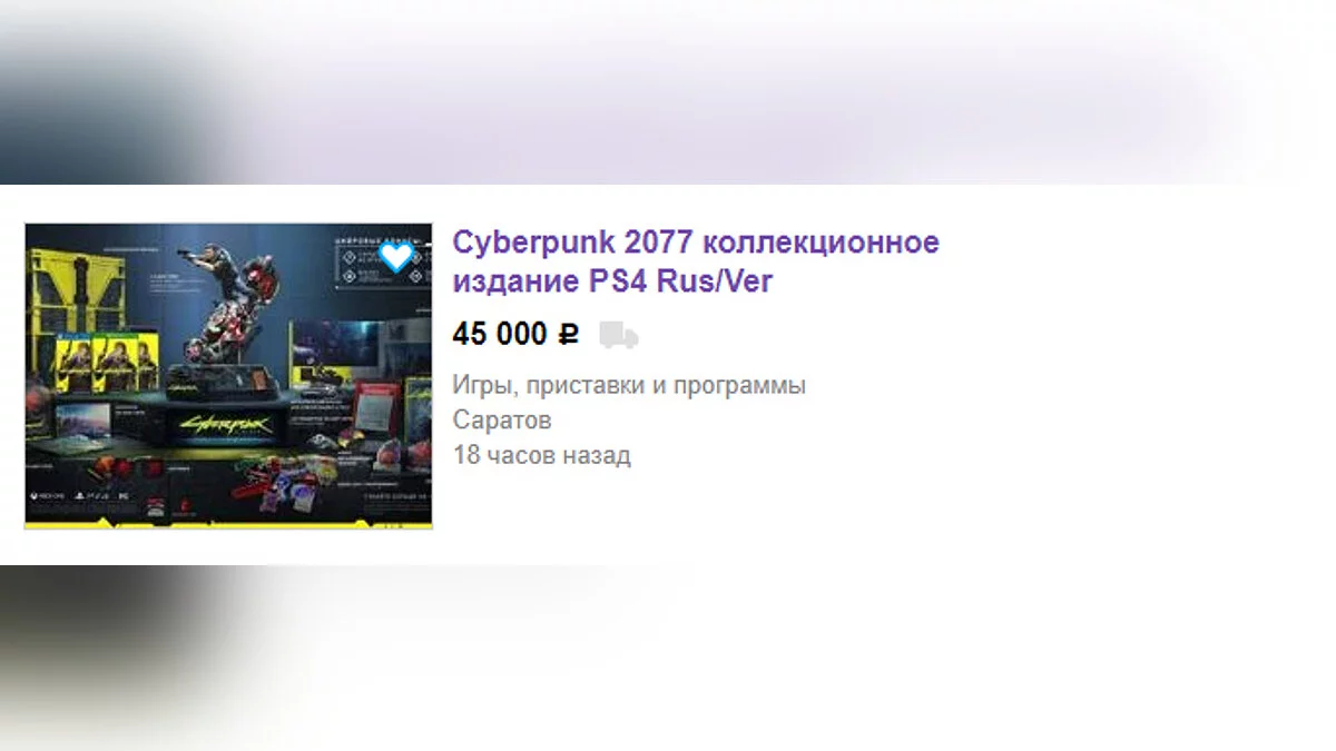 К примеру, официальная цена коллекционки Cyberpunk 2077 для PS4 составляет около 20 тыс. рублей, но на Avito появляются объявления, в которых за нее просят 45 тыс. рублей.