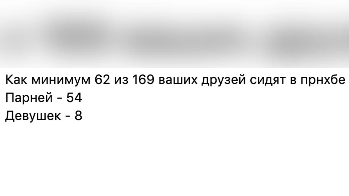 Житель Архангельска Даниил Суворов создал бота во «ВКонтакте» (PRNHB), который позволяет узнать, сколько друзей по социальной сети (с российским IP) посещают порносайт Pornhub.