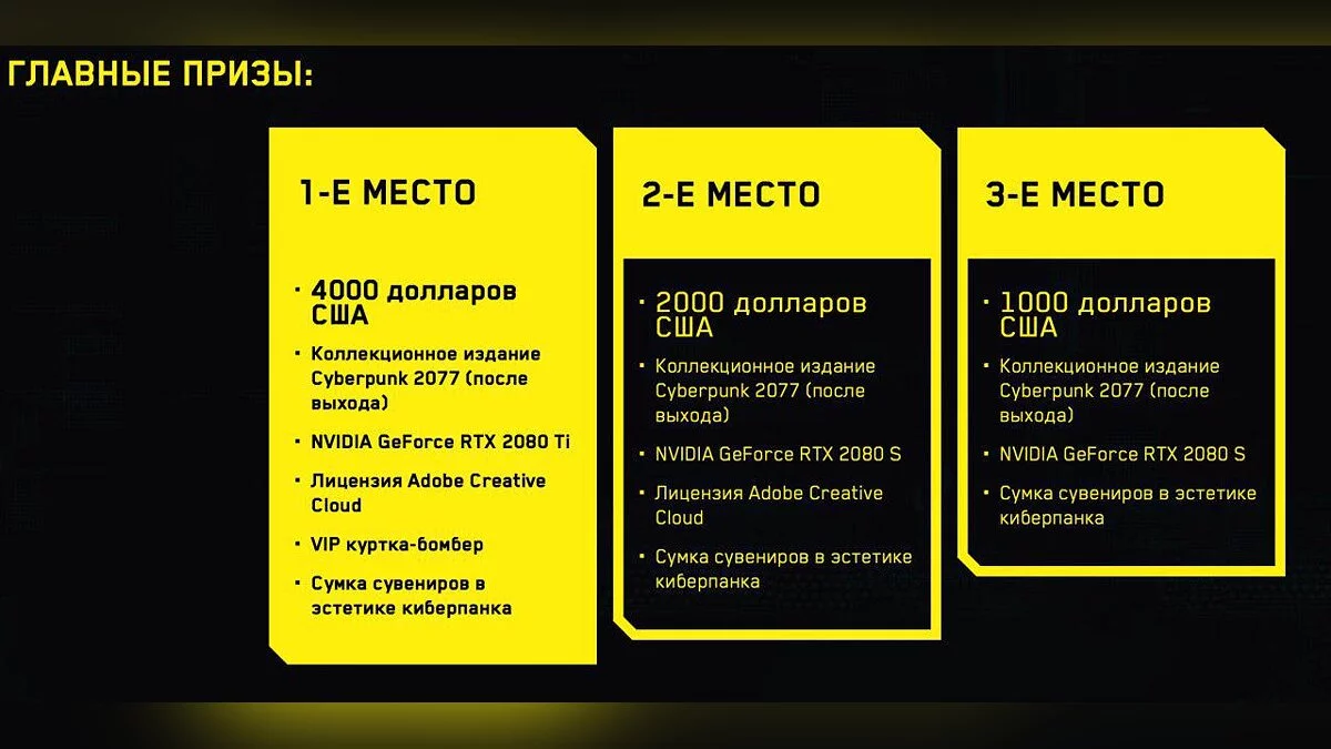 За первое место можно получить $4 тысячи, за второе — $2 тысячи, а за третье — $1 тысячу. Ряд призов дополнят курткой и набором сувениров.