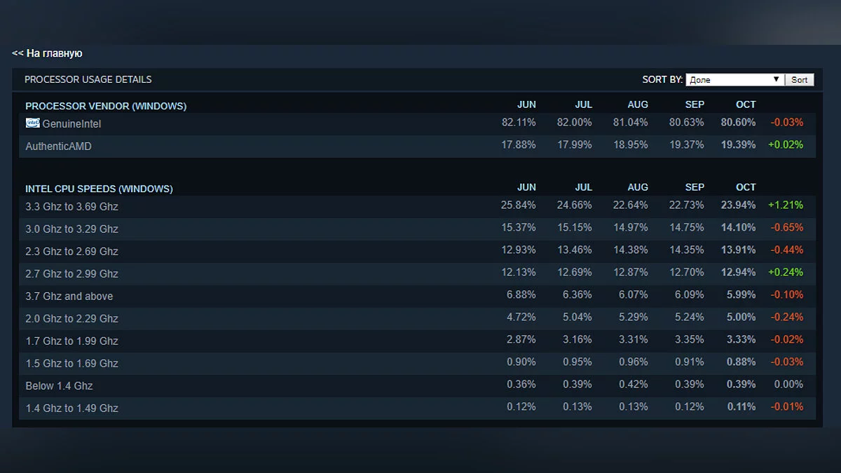 В Steam опубликовали результаты октябрьского опроса среди пользователей, в котором показали список самых популярных комплектующих для ПК.