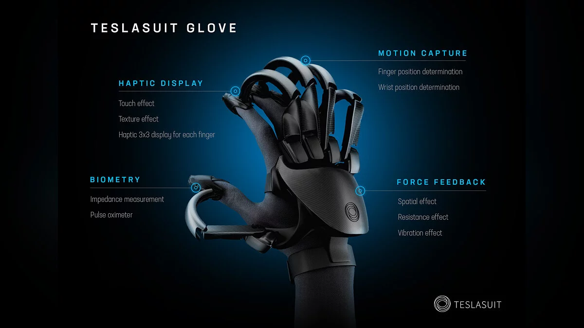 Белорусский стартап Teslasuit представил технологичные перчатки для виртуальной реальности, которые позволят пользователям чувствовать виртуальные текстуры и анализировать биометрические данные (измерение пульса).