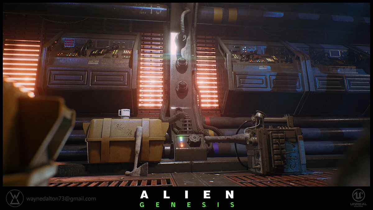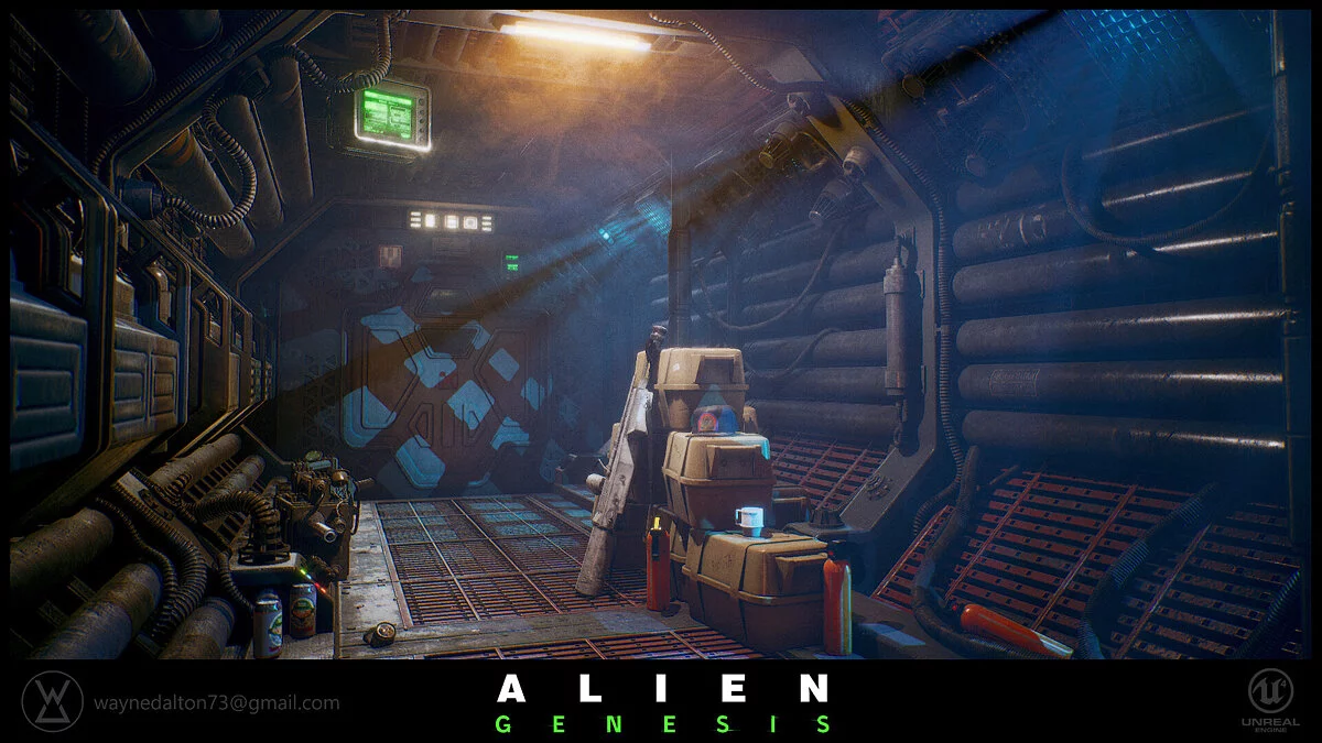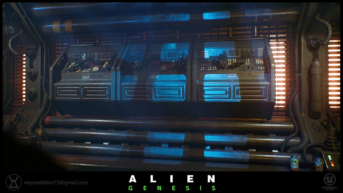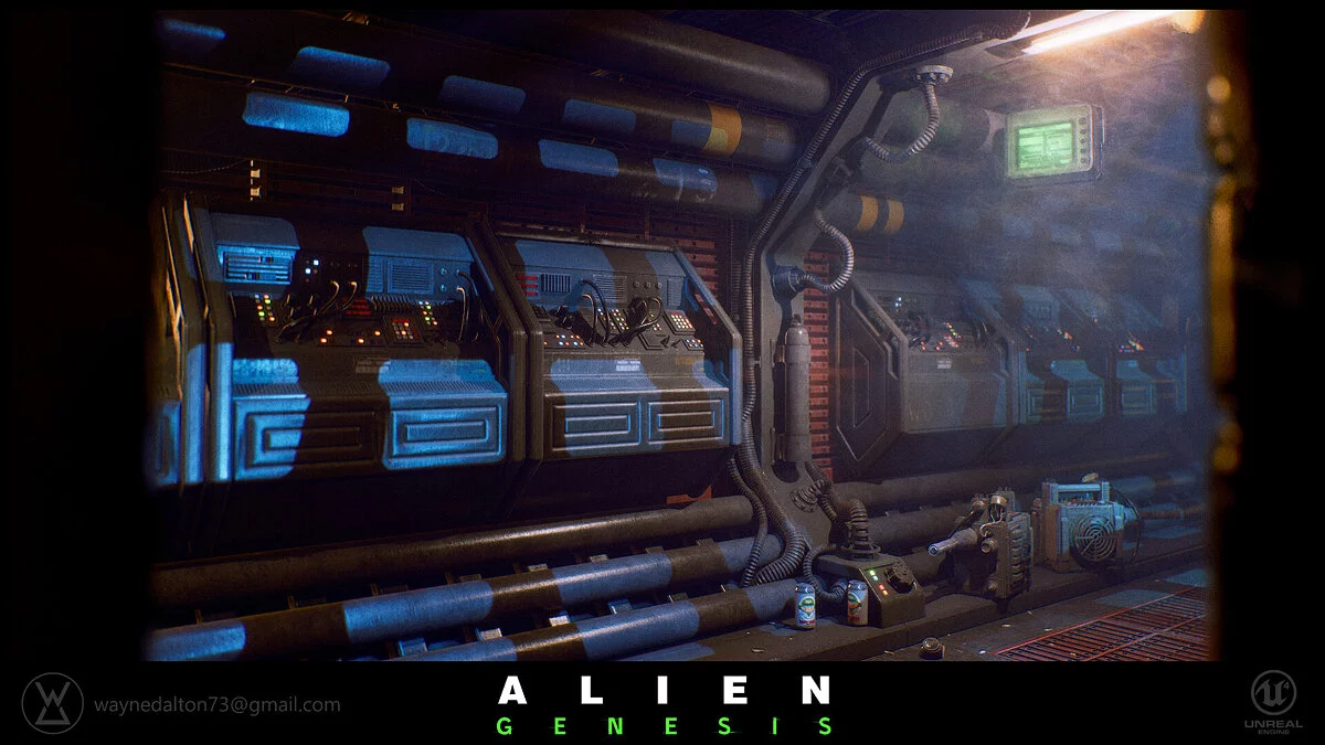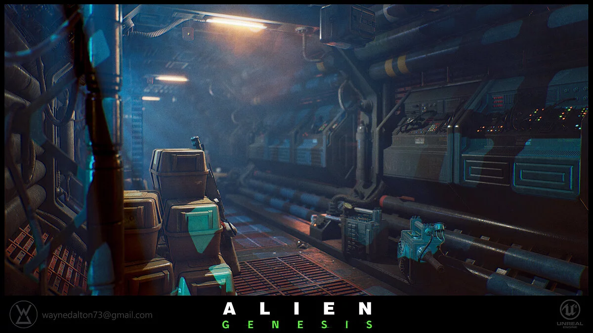 Художник Уэйн Далтон (Wayne Dalton) поделился скриншотами и видео своего персонального проекта Alien Genesis, который строится на движке Unreal Engine 4 и нацелен воссоздать локации космического корабля Ностромо из фильма «Чужой» 1979 года.