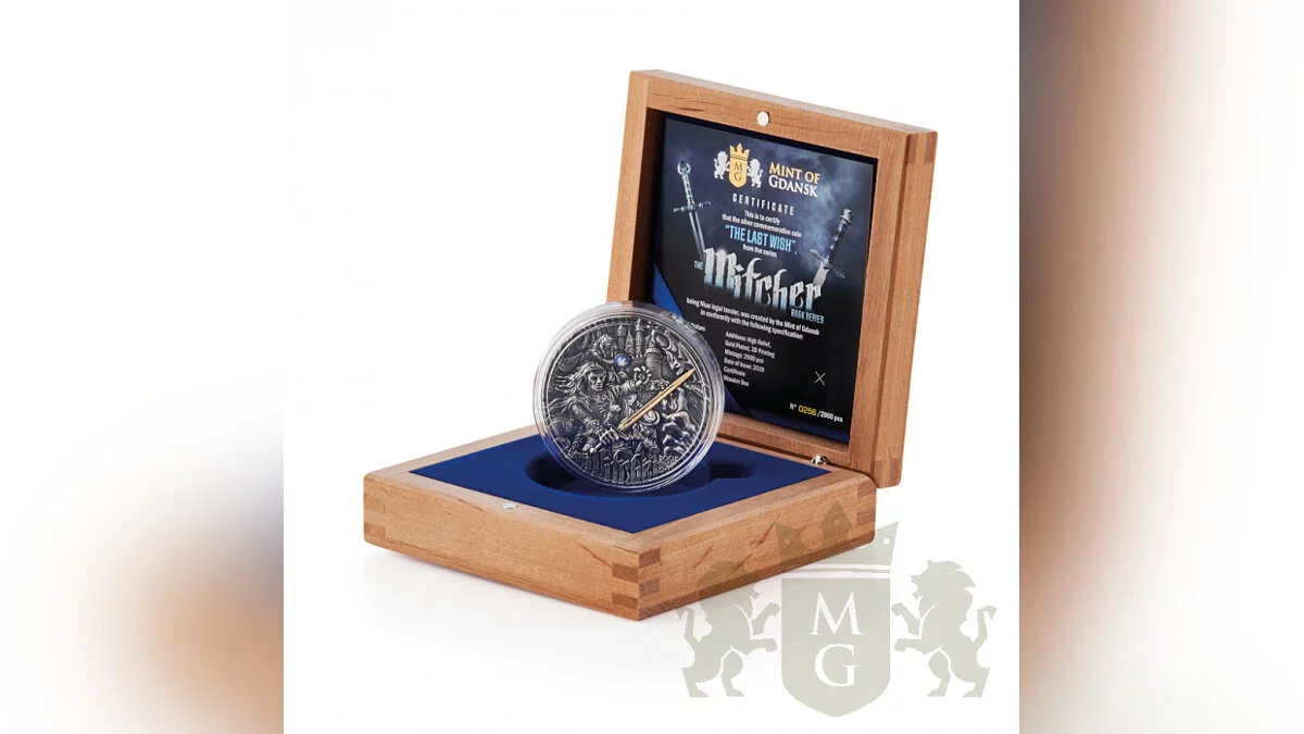 Вторая монета весит килограмм и продается по цене 16 тысяч злотых (260 тысяч рублей). Одна сторона воссоздает сцену с появлением Йожа в Цинтре, а другая показывает Геральта, въезжающего в ворота Цинтры.