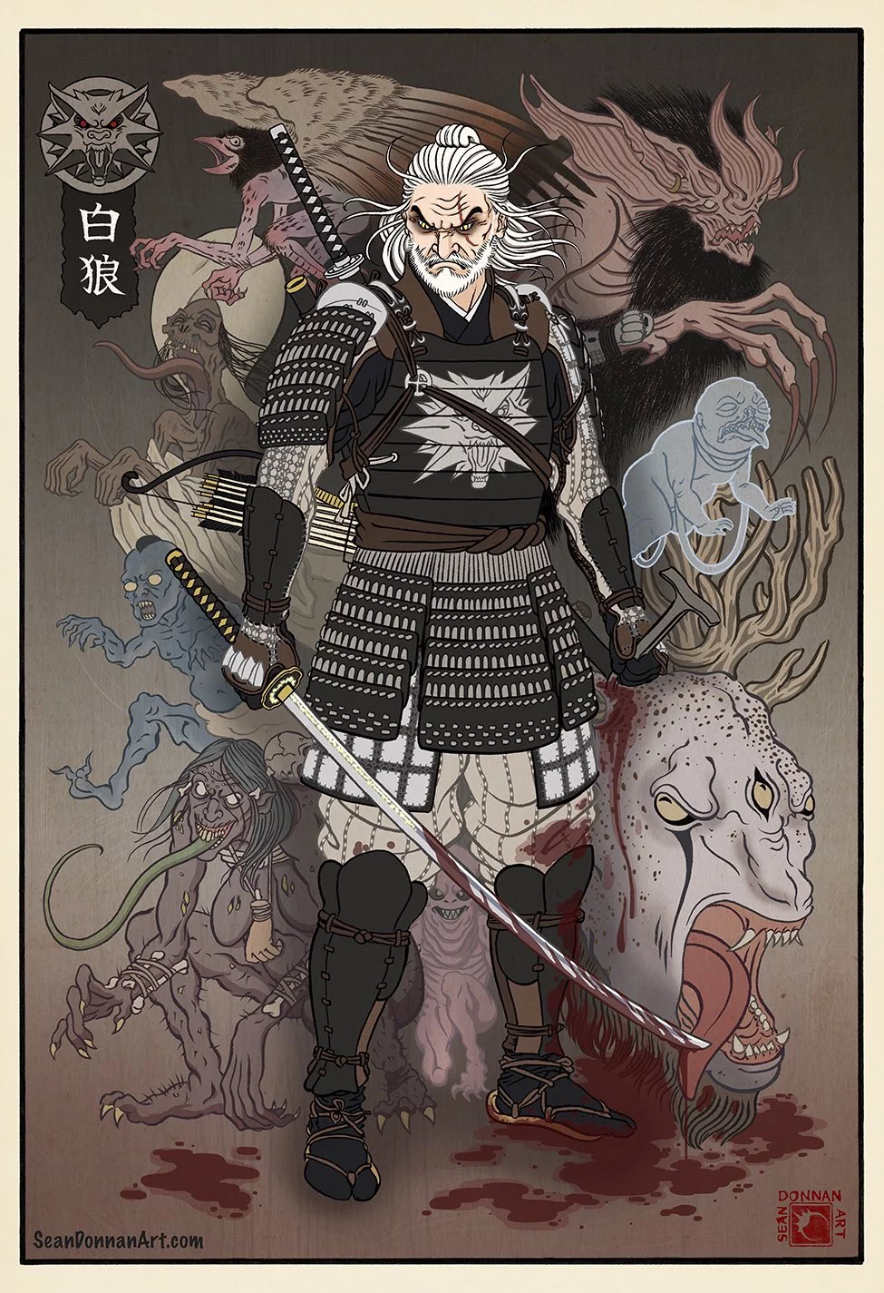 Художник сделал из ведьмака Геральта самурая, а Цири, Йен и Трисс превратил в японских воительниц