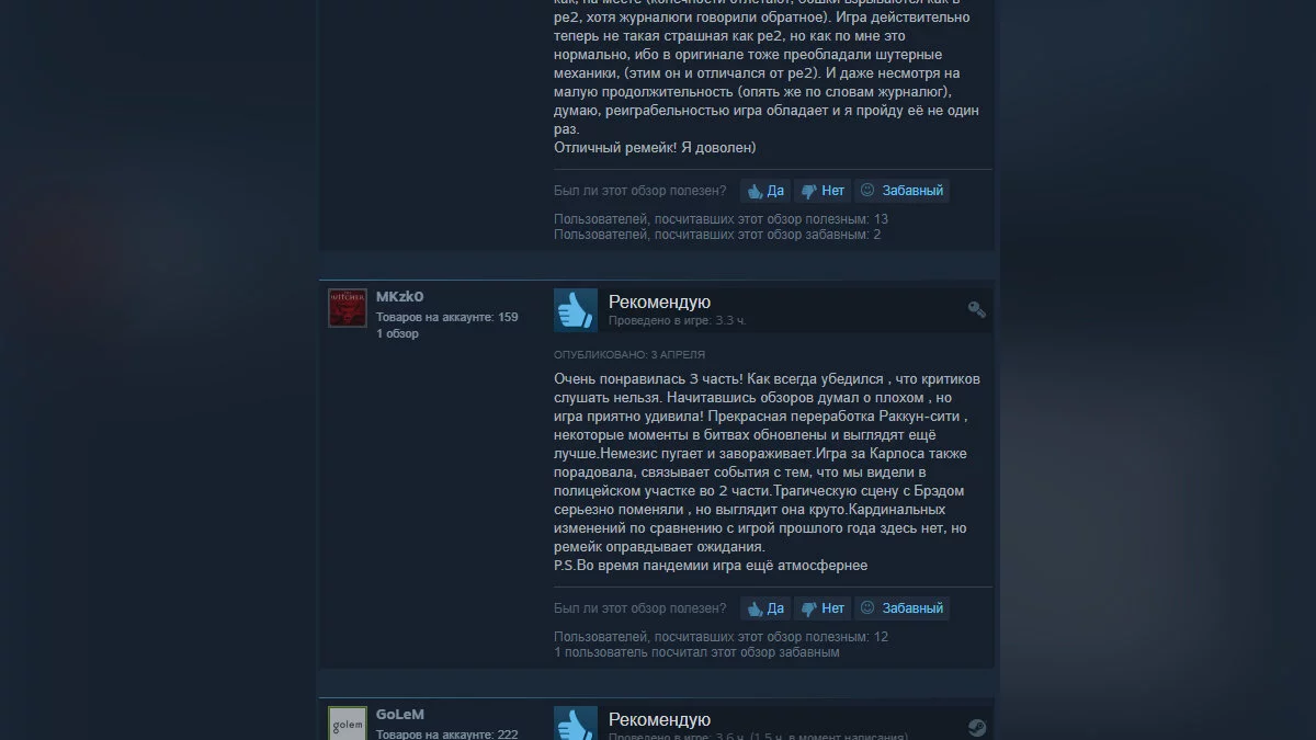 «Играю с открытым ртом» — Resident Evil 3 получила от геймеров в Steam 90% положительных отзывов