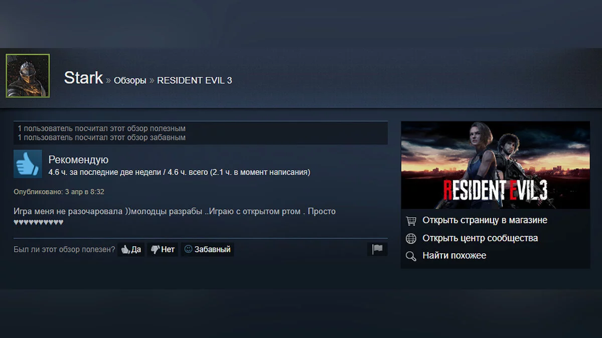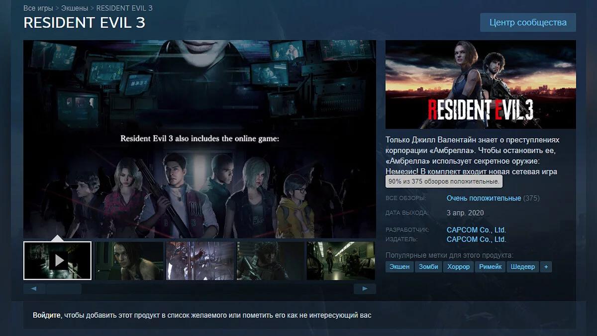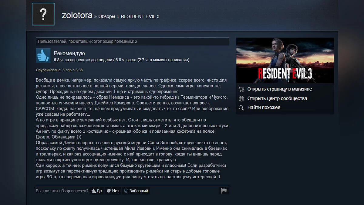 Игровые новости видео Новости «Играю с открытым ртом» — Resident Evil 3 получила от геймеров в Steam 90% положительных отзывов