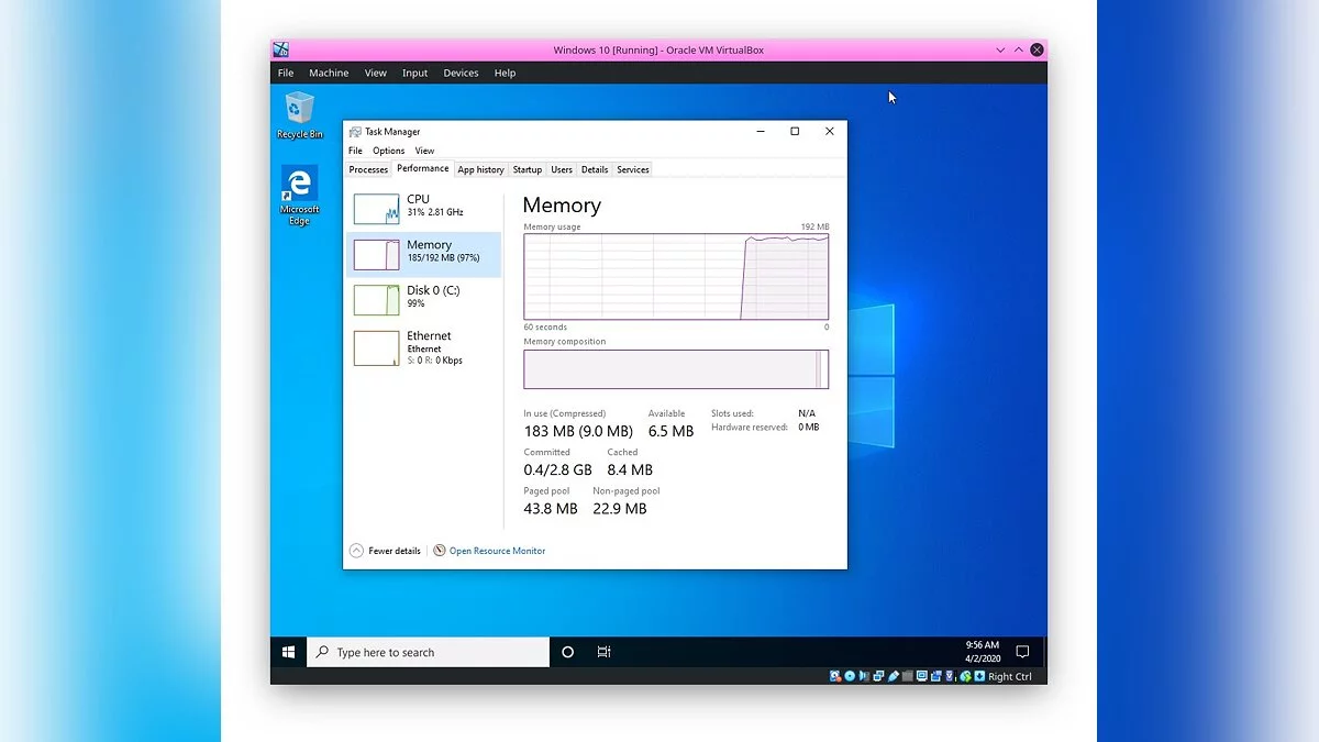 С 192 МБ ОЗУ система загружалась около трех минут. Стоит заметить, что ОС, кстати, также запустилась на 140 МБ ОЗУ, но, правда, при таком условии ее интерфейс так и не смог загрузиться.