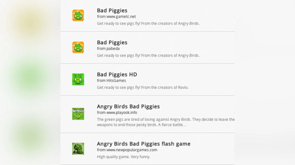 Всего несколько недель прошло с момента выхода игры Bad Piggies, а умельцы из числа хакеров уже состряпали вредоносные приложения, интерфейс и названия которых бессовестно копируют известную игру от Rovio.