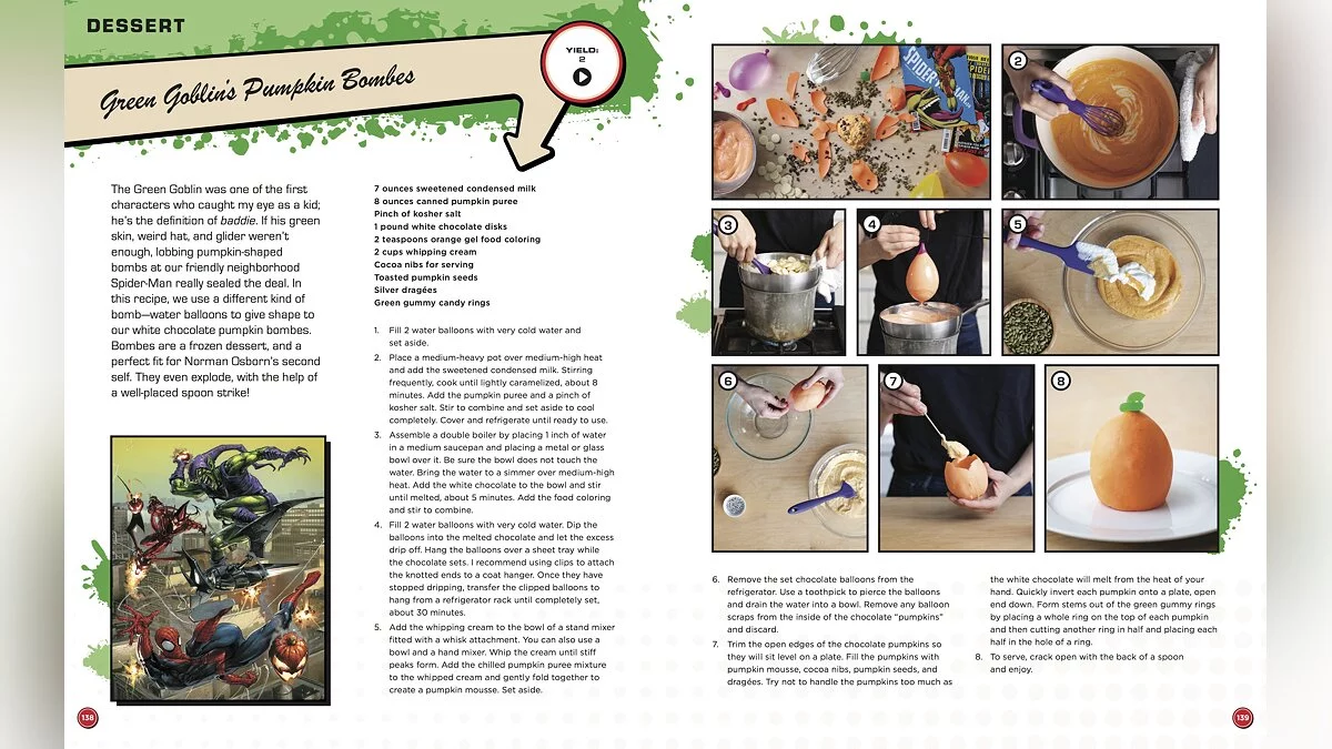 Например, после прочтения книги фанаты научатся готовить язык Венома. Для рецепта потребуется красный перец и активированный уголь, чтобы окрасить тесто для пасты в черный цвет.