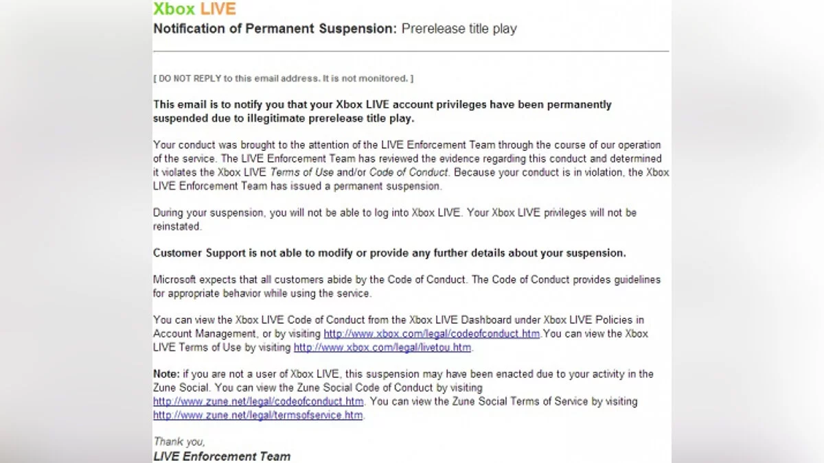 Сообщество на Reddit опубликовало информацию о бане в Xbox Live, заявив, что Microsoft начала присылать правонарушителям «письма счастья» с «приятной» новостью внутри.