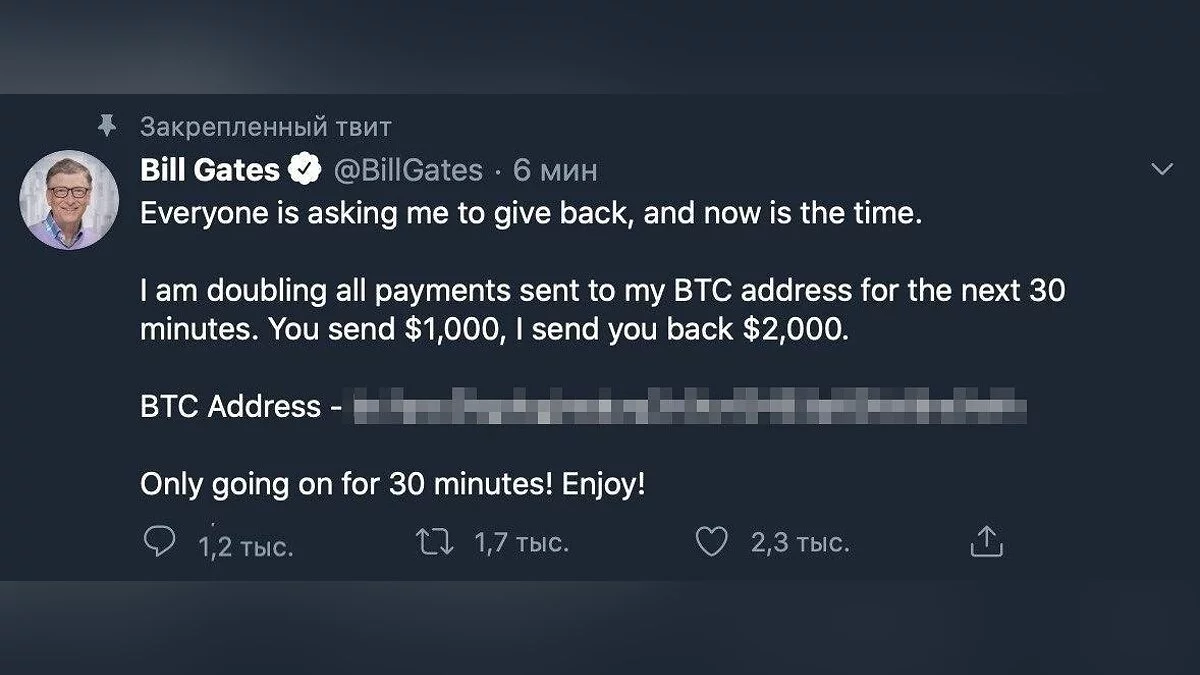 Популярные страницы стали предлагать читателям отправить сумму в биткоинах на определенный счет, на что аккаунт известного человека или компании обещал отправить в два раза больше денег.