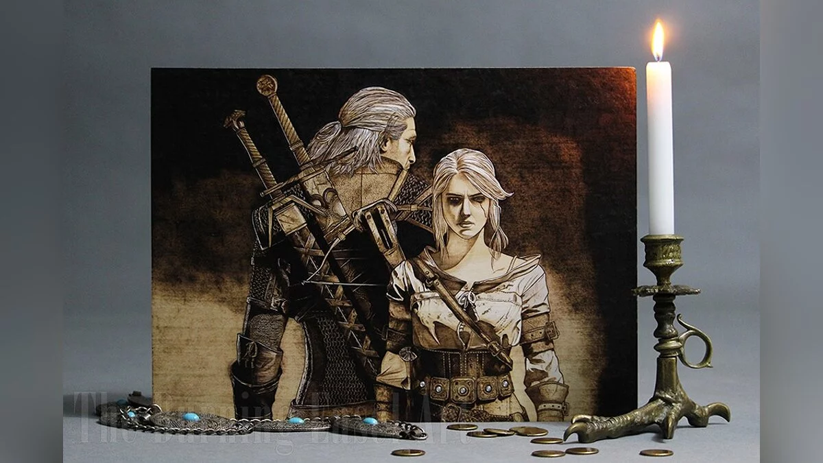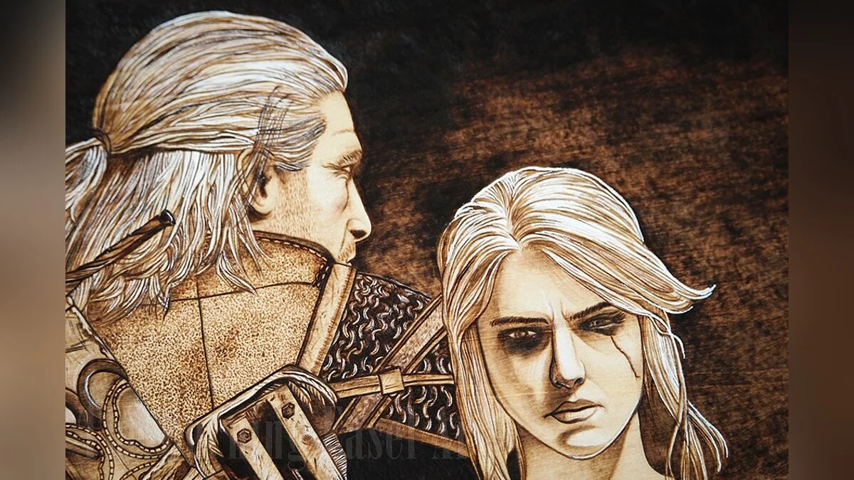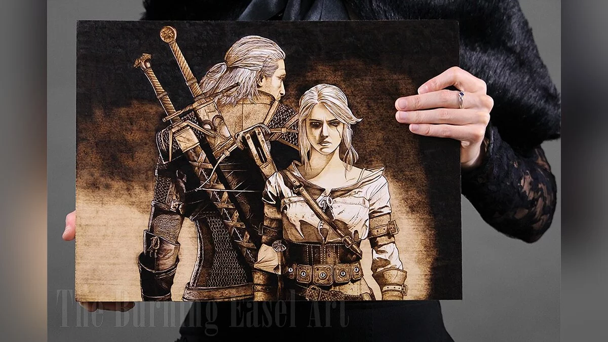 Девушка с ником The Burning Easel Art (признано в России экстремистской организацией) с помощью пирографии создала невероятно красивую и детализированную картину The Witcher 3: Wild Hunt. На ней изображены Геральт и Цири.