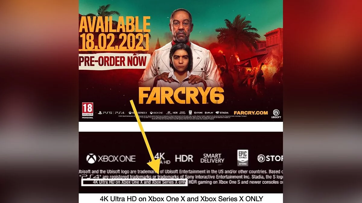 Привет! Как и указано на баннере, Far Cry 6 будет поддерживать разрешение 4K Ultra HD только на Xbox One [вероятно, имелась в виду Xbox One X и Xbox Series X. Приносим прощения за доставленные неудобства.