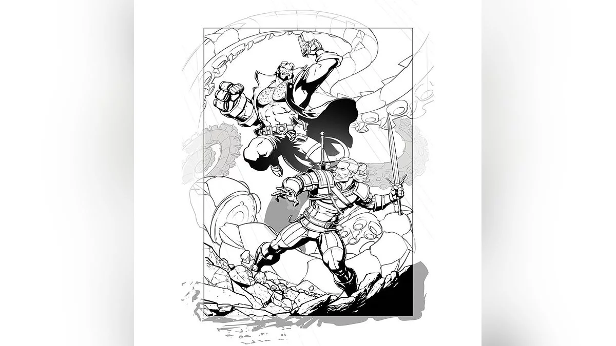 Геральт из The Witcher 3 против Хеллбоя — художник показал битву двух культовых героев