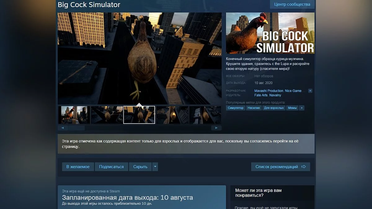 На проект обратили внимание пользователи Reddit. Релиз Big Cock Simulator состоится 10 августа.