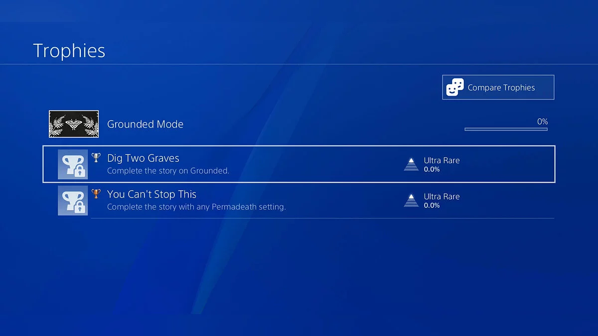 За прохождение The Last of Us Part II на уровне сложности «Реализм» можно получить достижение «Две могилы» (Dig Two Graves), а в режиме с перманентной смертью — «Это неизбежно» (You Can't Stop This).