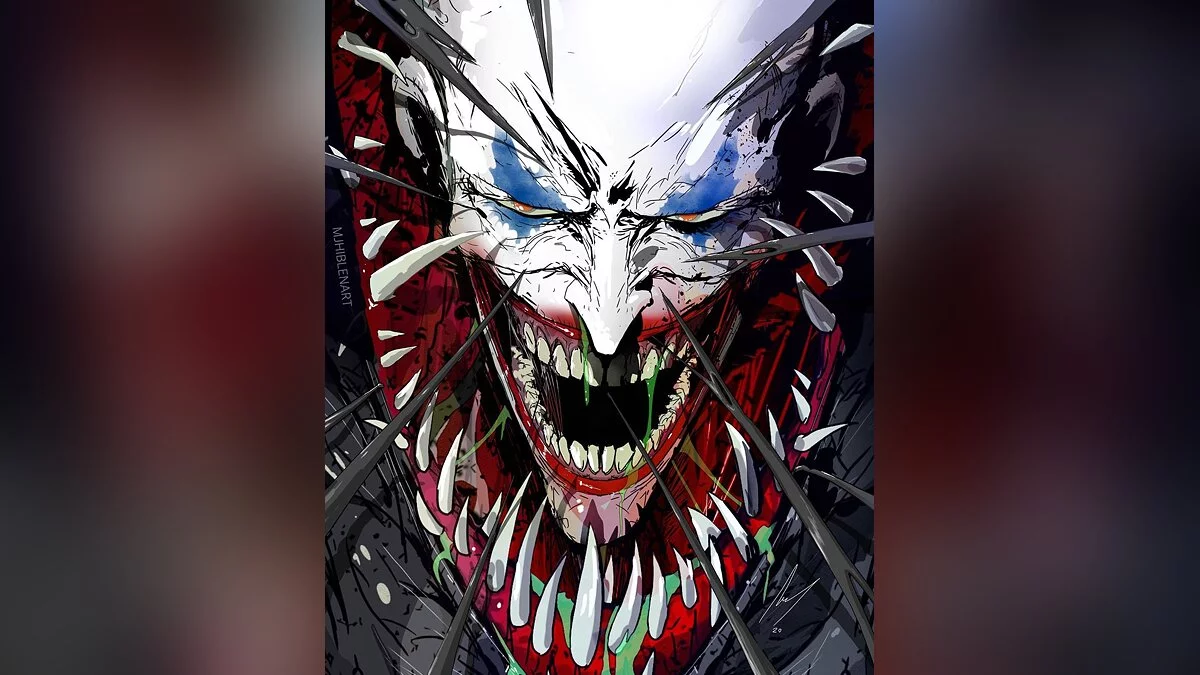 Художник с ником MJ.Hiblen (признано в России экстремистской организацией) уже больше года занимается тем, что рисует арты, показывающие, что получится, если объединить двух культовых злодеев из комиксов — Джокера и Венома. Есть также версия арта, на котором Джокер превращается в Карнажа.