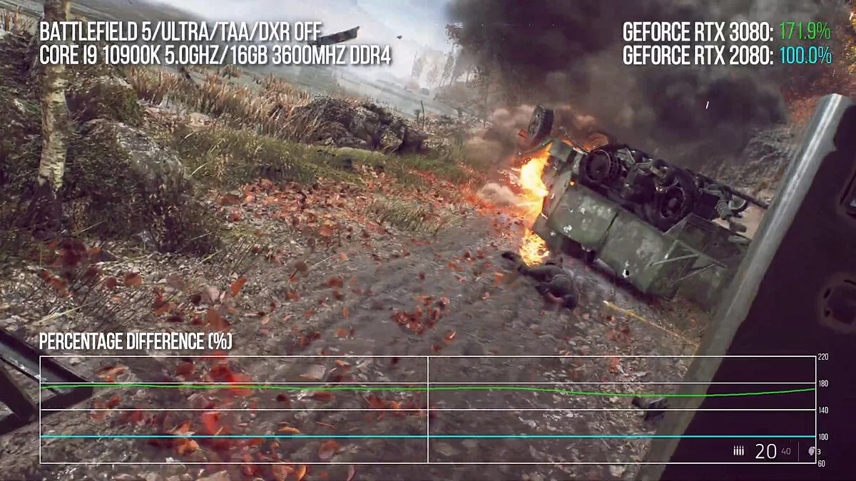 Специалисты показали, насколько RTX 3080 мощнее RTX 2080 в AAA-играх. Разница существенная