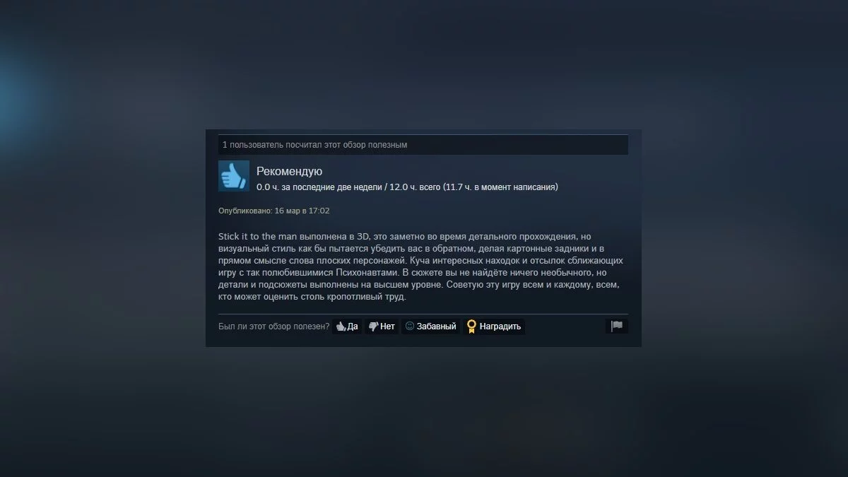 Stick It To The Man! имеет 95% положительных отзывов в Steam. Вот что пишут пользователи: