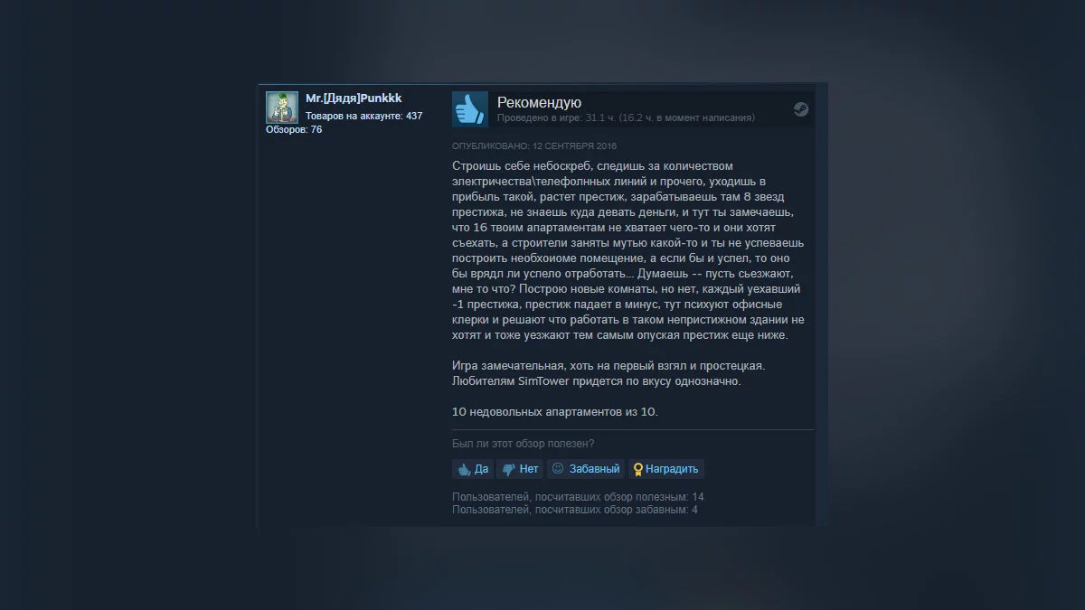 В Steam временно бесплатной стала игра, в которой можно создать небоскреб. Ее рейтинг 84%