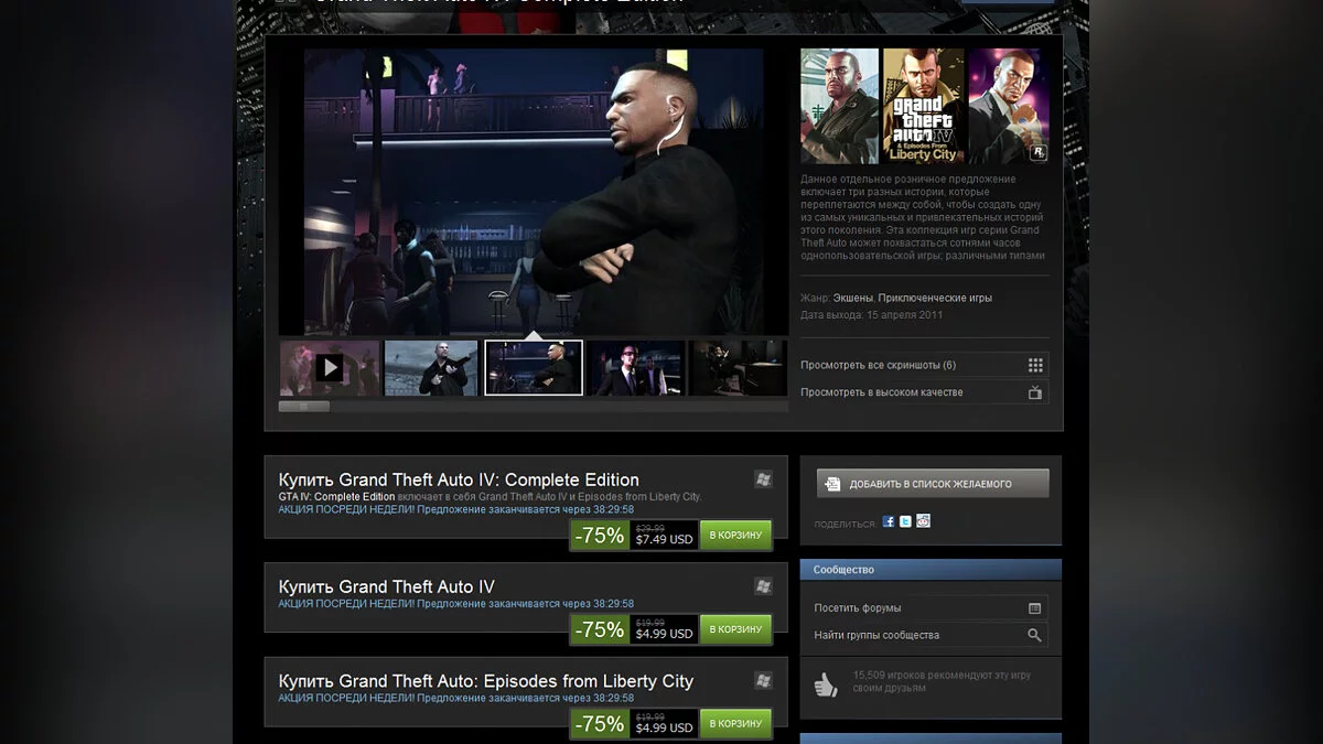 Grand Theft Auto 4: Complete Edition в Steam продают всего за 240 рублей
