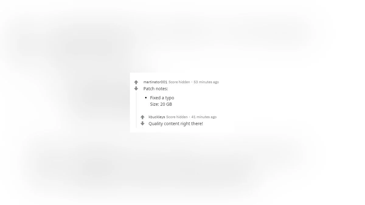 Также игроки пошутили над размерами обновлений. Размер недавнего патча превысил 24 ГБ.