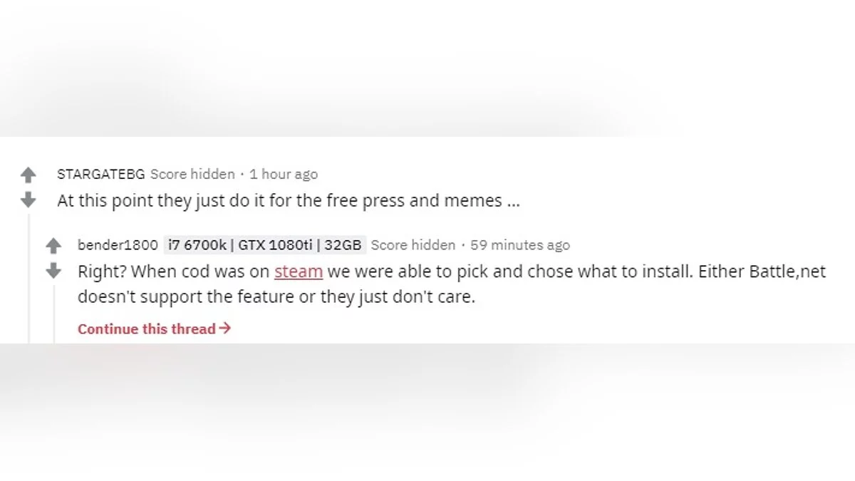 - Когда CoD была на Steam, у нас была возможность выбора, что устанавливать. Или Battle.net не поддерживает эту функцию, или им просто плевать.