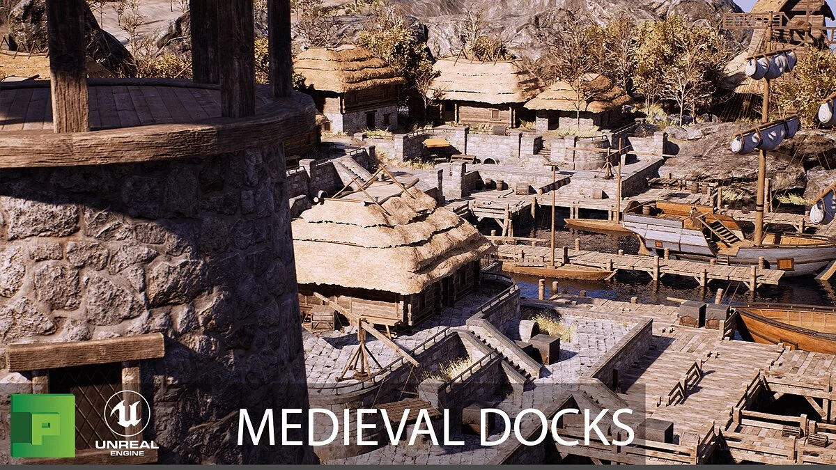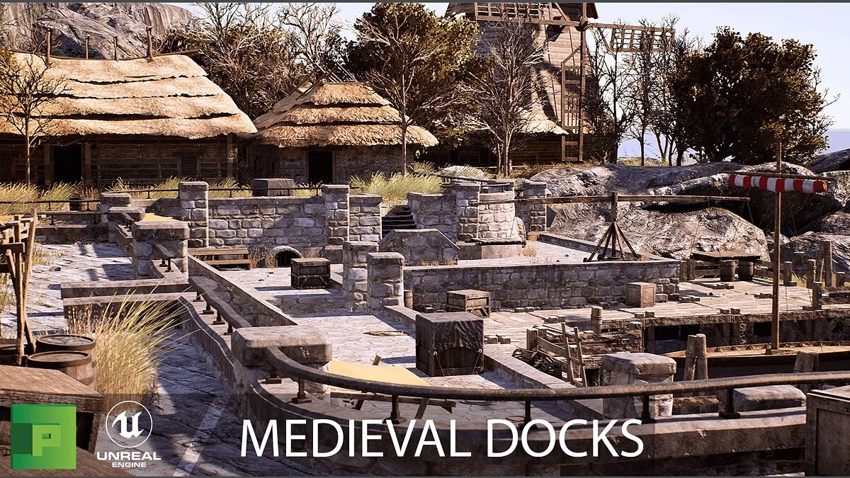 Второй пак на тему средневековья, но на этот раз доки. В набор входит более чем 200 ассетов всевозможных предметов: от Стен и домов, до лодок и рыночной утвари. Из особенностей имеются LOD для деревьев и реквизита