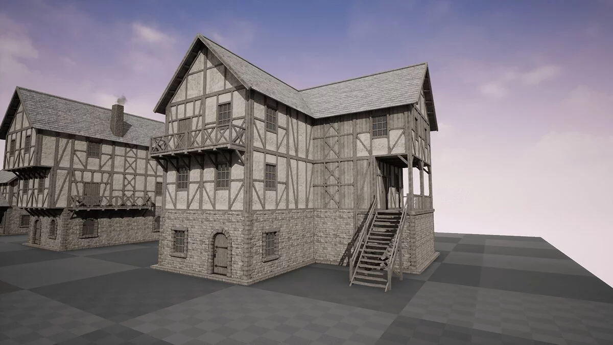 Средневековье рулит! Пак содержит около 90 частей модульных домов и 40 ассетов (таких как бочки, ящики, столы и т.д.). LOD присутствует