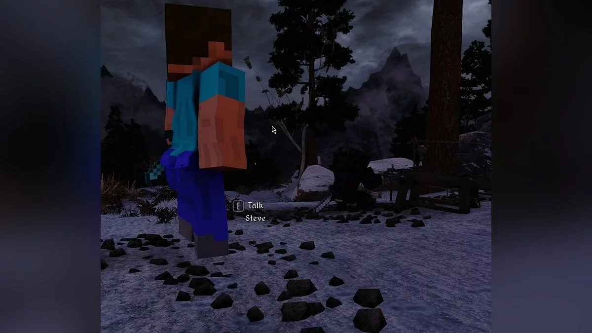 В сети появился свежий мод Minerfriends, который предназначен для Skyrim и добавляет в Тамриэль кучу контента из кубического мира Minecraft. В том числе там есть Стив.