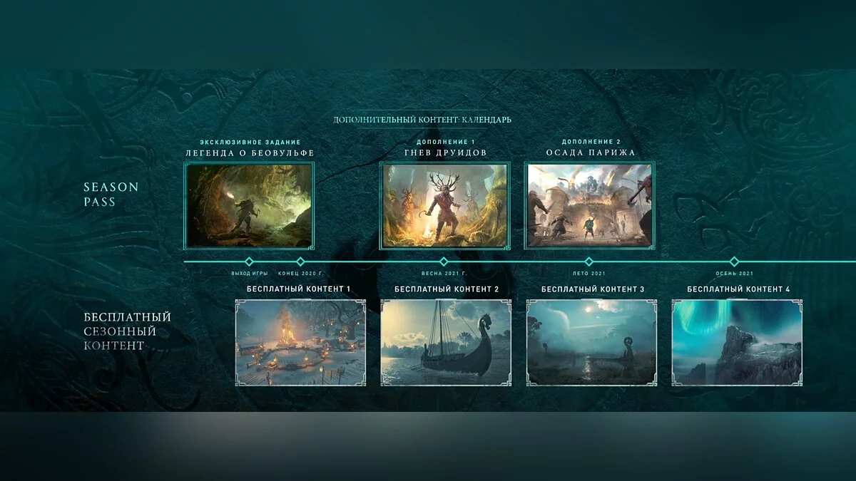 В следующем году разработчики выпустят два крупных дополнения, которые войдут в состав сезонного пропуска: «Гнев друидов» (весна 2021-го) и «Осаду Парижа» (лето 2021-го). В первом расширении Эйвор отправится в Ирландию выслеживать культ друидов, а во втором, как понятно из названия, игроки попробуют захватить столицу Франции.