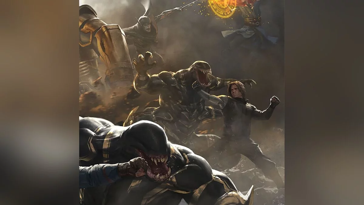 Во время работы над сценой Лэнг сначала создал манекены в ZBrush, а затем сделал набросок, из которого появился полноценный арт. На нем можно заметить некоторые отличия от финальной версии. К примеру, Тор находится в отличной форме , а Мьельнир не находится в руках Кэпа. Также на поле боя нет многих персонажей, включая Халка и Капитана Марвел.