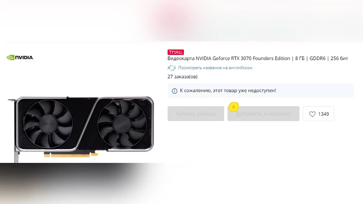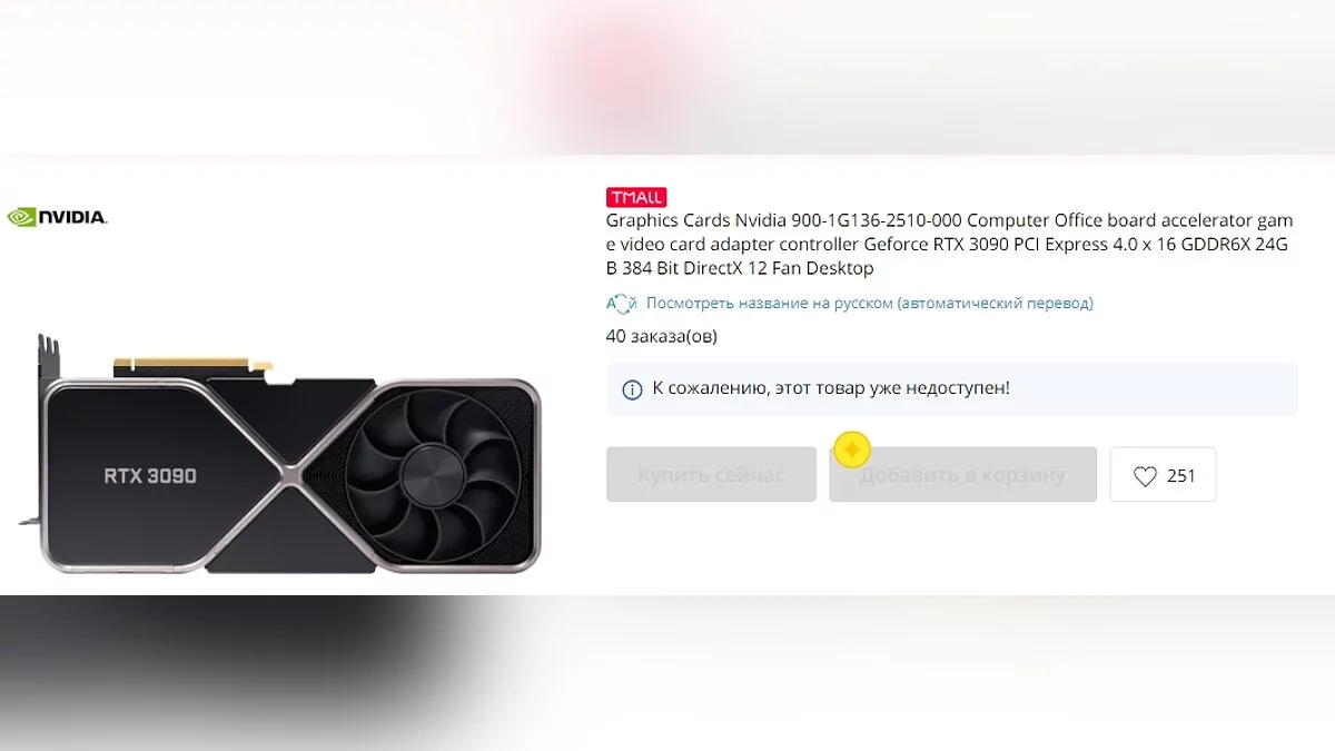 Российские продажи видеокарт NVIDIA RTX 3000 закончились, едва начавшись. Сегодня в 16:00 МСК на официальном сайте производителя появилась ссылка на магазин AliExpress, и спустя считанные минуты всю партию практически раскупили.