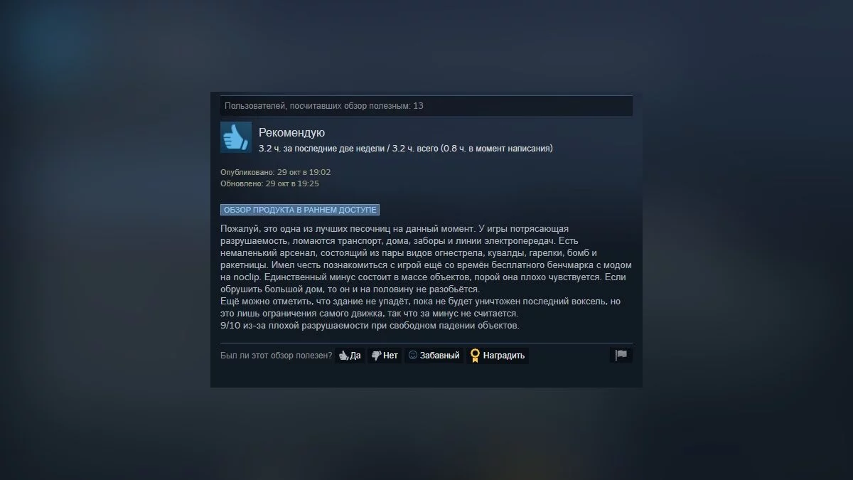 В Steam вышла «одна из лучших песочниц» с полностью разрушаемым миром. Ее рейтинг уже 96%