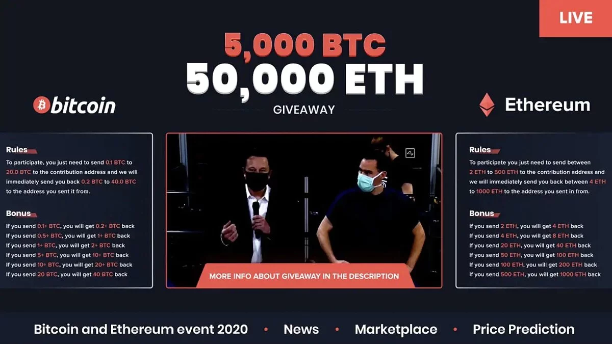 На самих стримах при этом использовалась реальная запись с Илоном Маском, у которой не было звука — на ней популярный бизнесмен явно говорил о чем-то другом. Вокруг ролика же указана схема, которая мотивирует зрителей отправлять криптовалюту мошенникам.