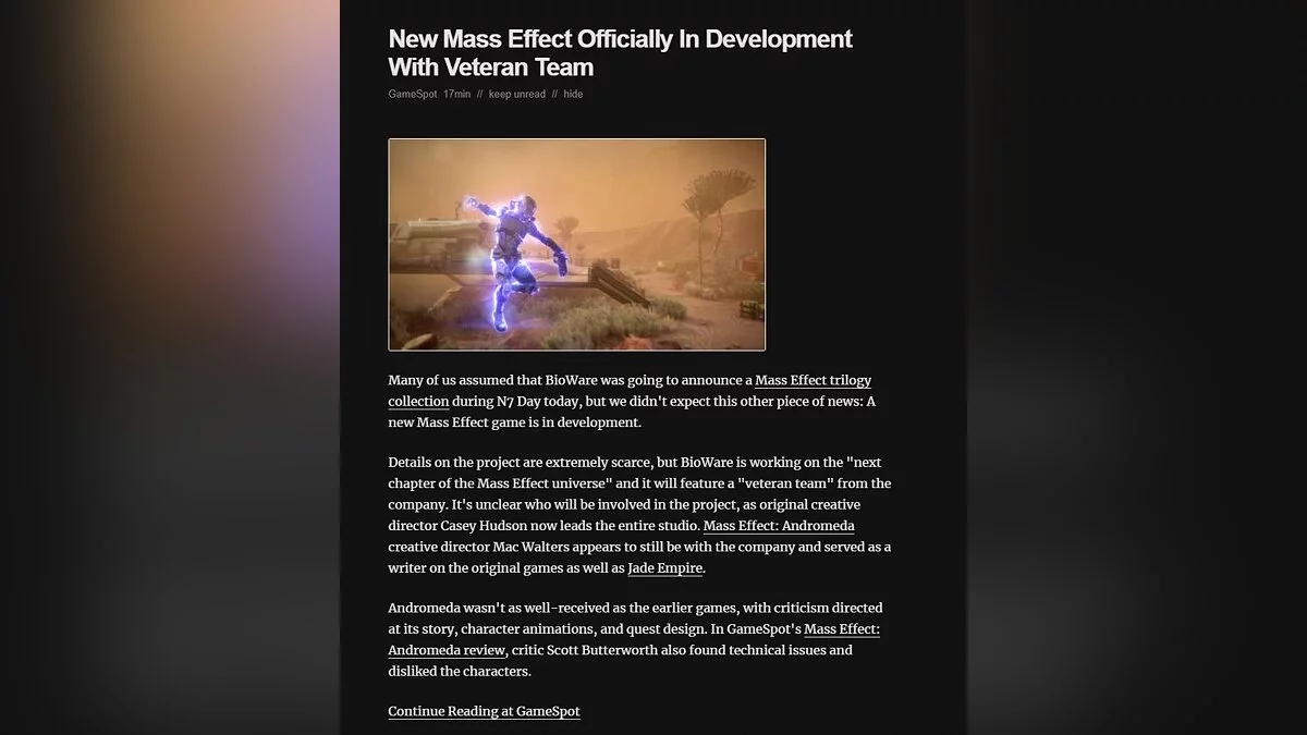 Также в статье подтверждено, что студия BioWare разрабатывает новую часть. В команде есть некие «ветераны» серии.