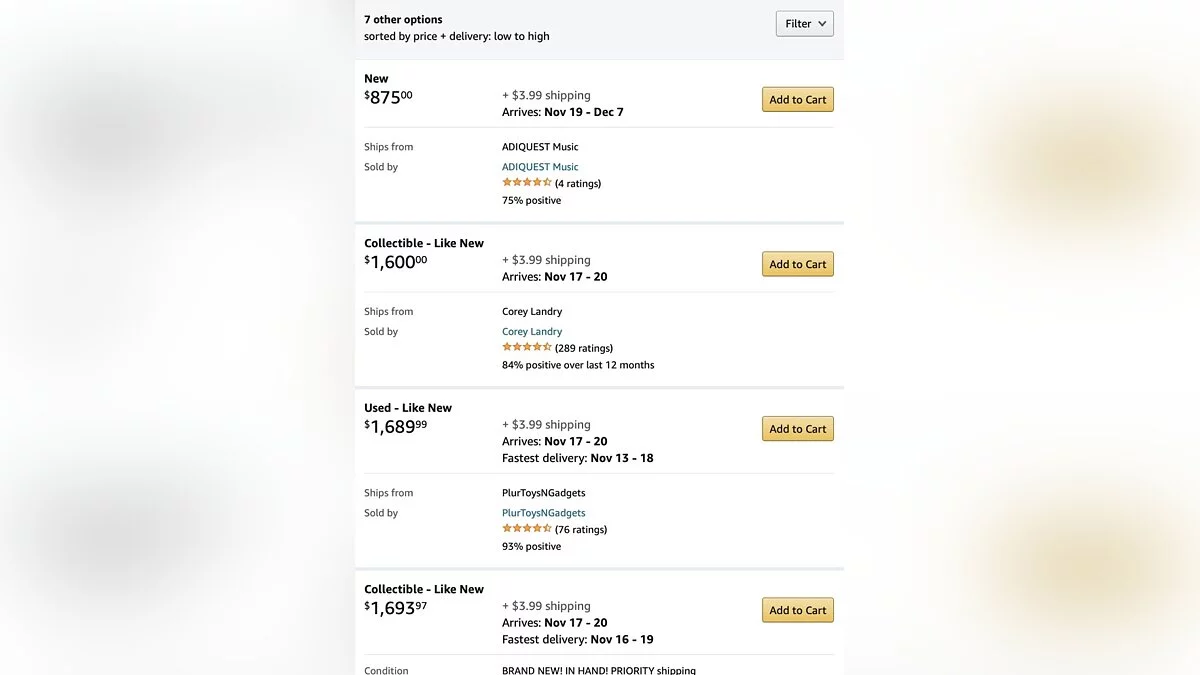 На скриншоте выше видно, что на вторичном рынке цены на Xbox Series X достигают $1700, что в пересчете на российскую валюту по текущему курсу составляет 136 тыс. рублей за консоль. В среднем за коробку XSX просят $1000 на таких площадках, как Amazon и Ebay.