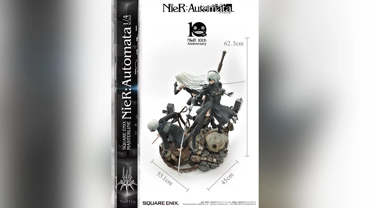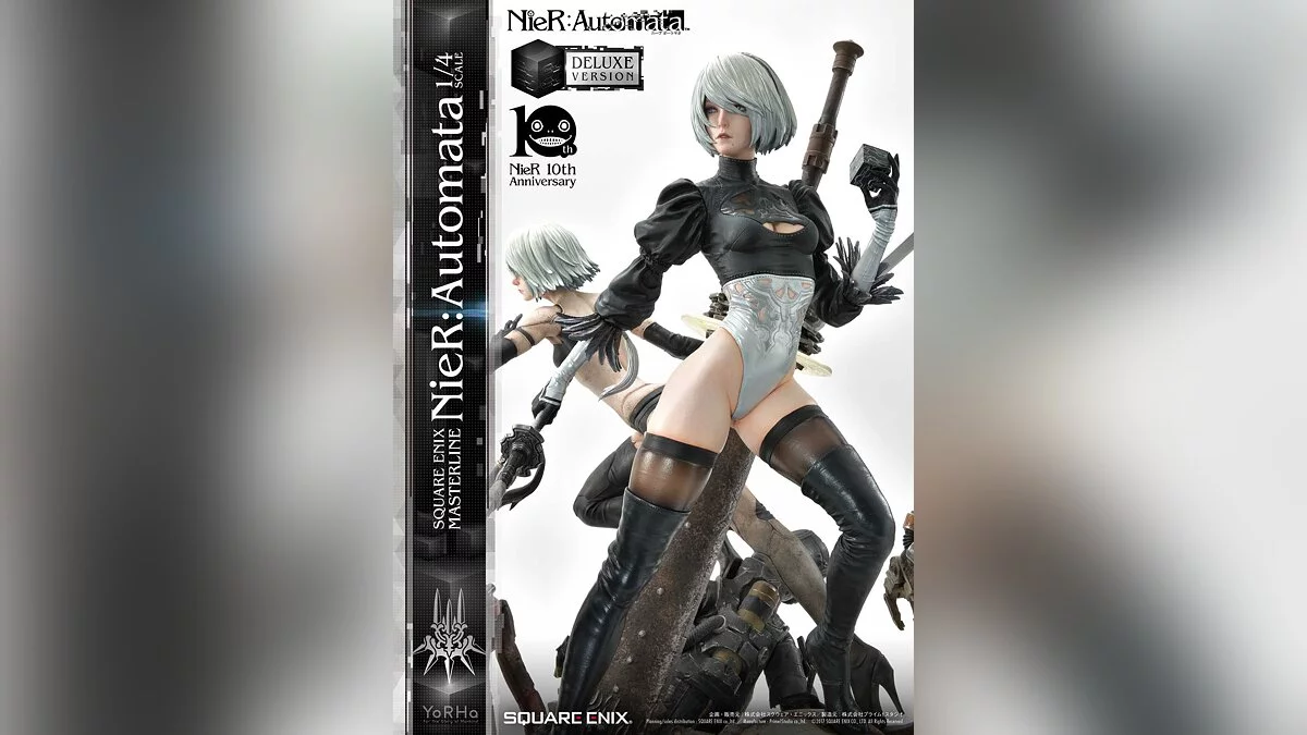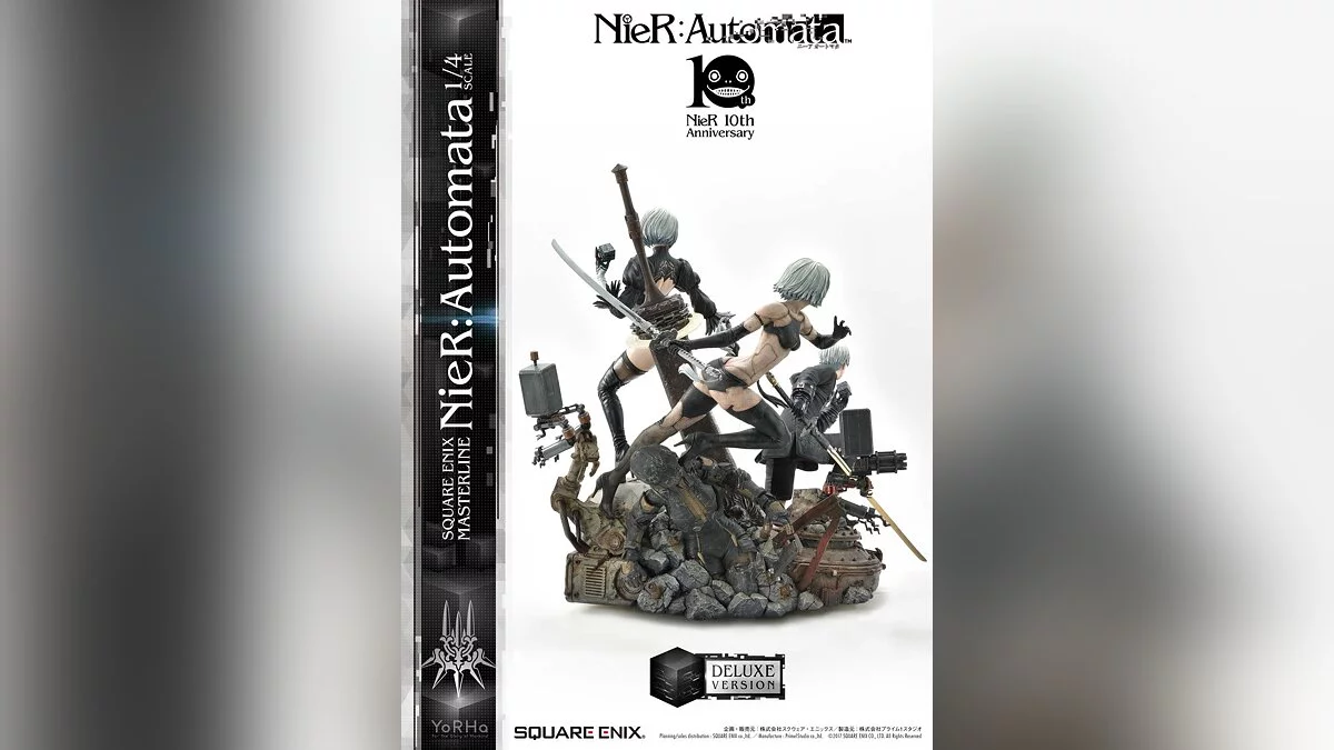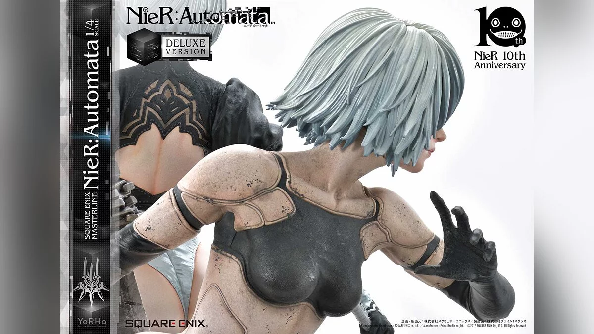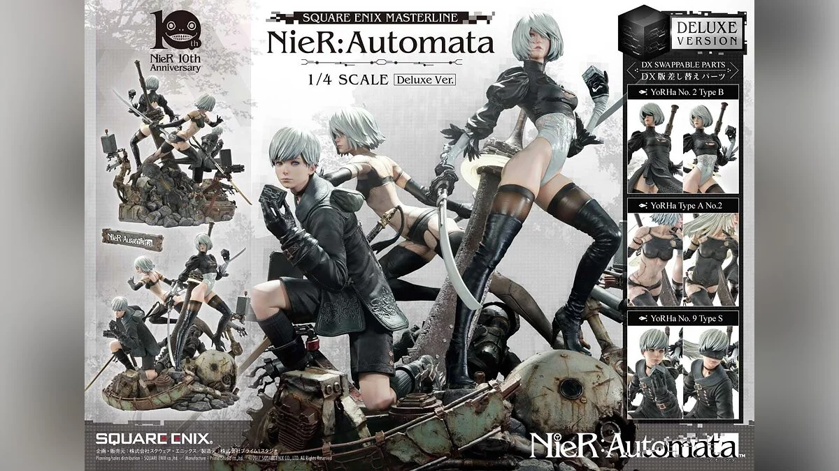 Коллекционка объединяет на одном постаменте андроидов 2B, 9S и A2. Изделие имеет два издания: обычное и делюкс. Более дорогая версия содержит сменные головы для всех персонажей, дополнительную левую руку с кубом для 9S, второй торс для A2 и нижнюю часть тела для 2B.